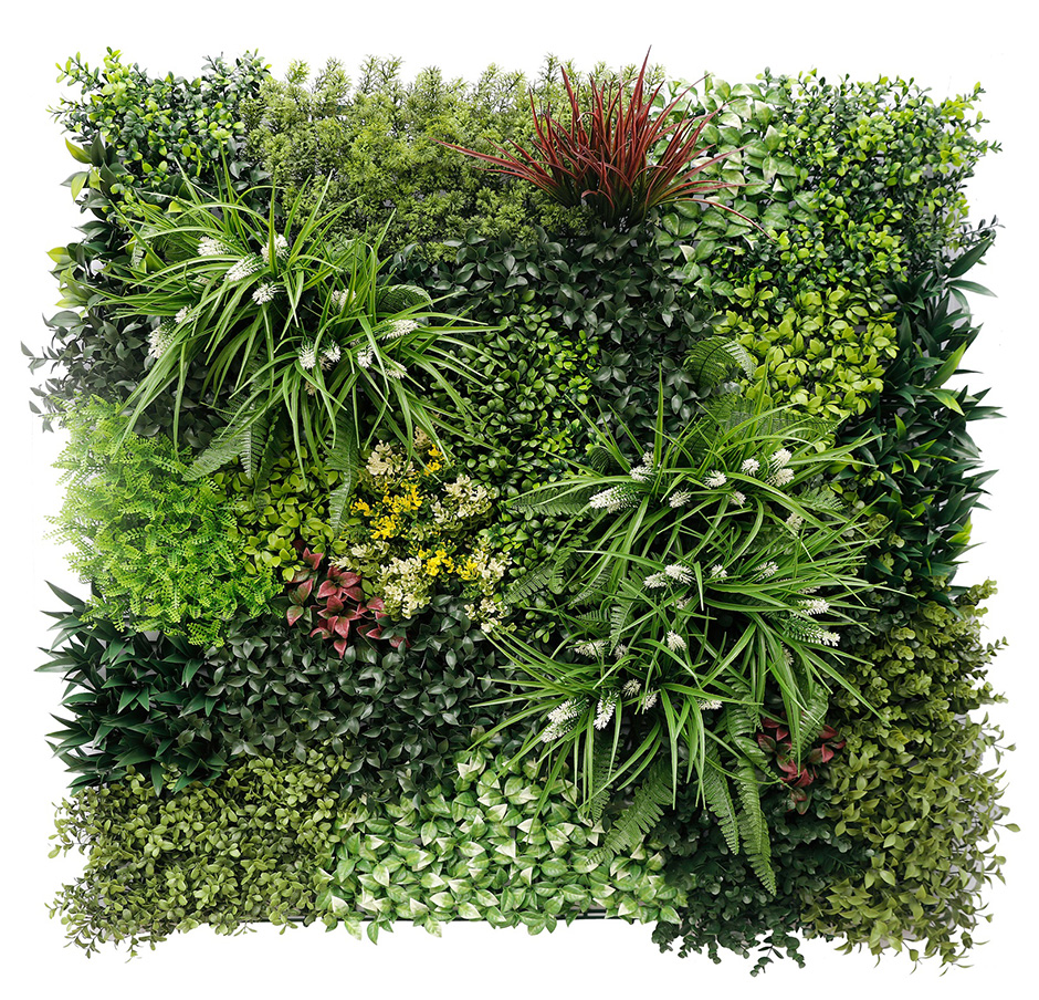 Está fabricado con materiales ligeros pero resistentes, no desprende olores y es ignífugo, lo que lo hace ideal para interiores de alto tránsito como recepciones, pasillos o salas de espera. También es muy valorado en viviendas como elemento decorativo en salones, zonas de paso o despachos. Si buscas un jardín vertical para interiores con estética cuidada y acabado realista, Verdant Canvas es tu mejor elección.